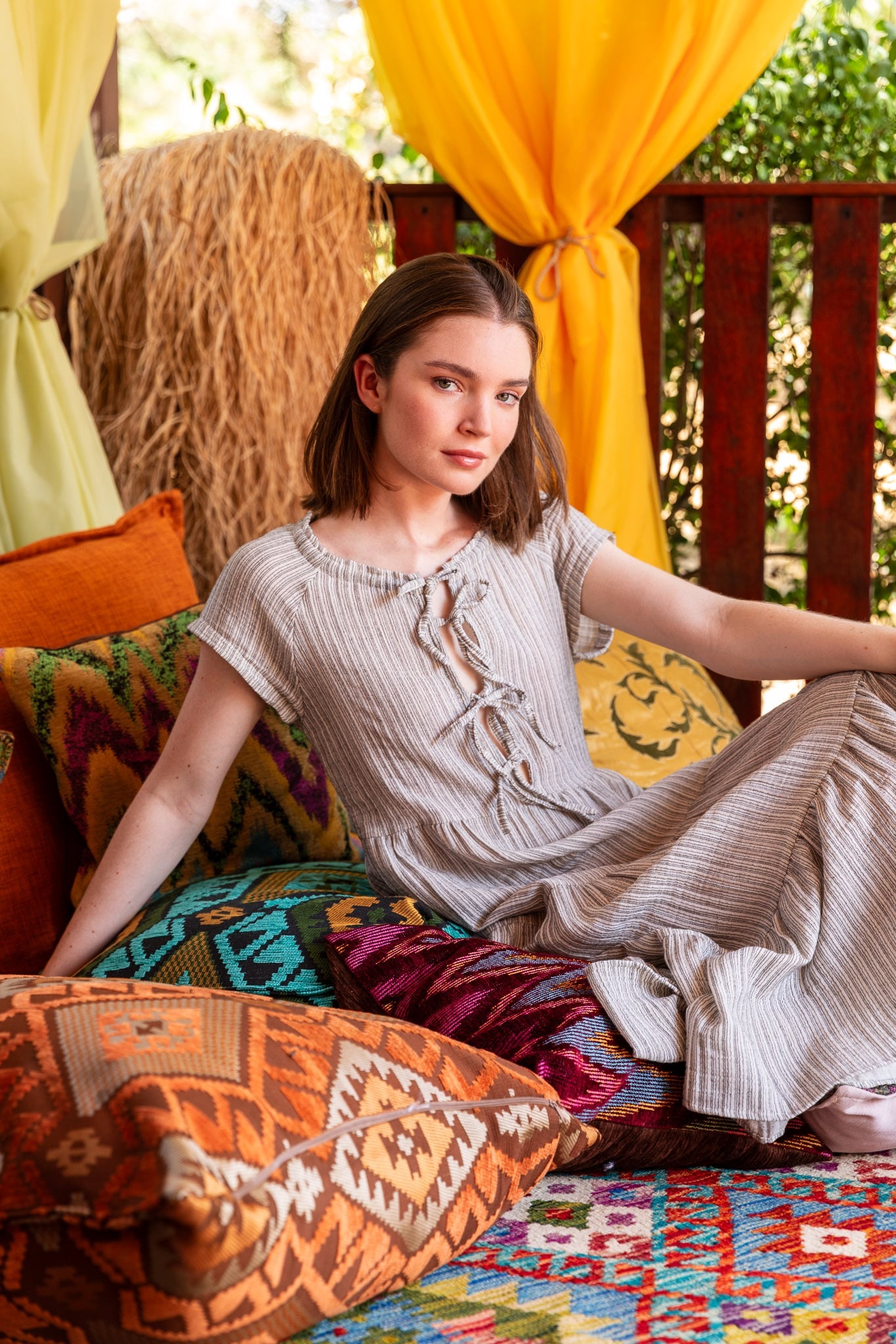 Hadley Dekolteli Keten Elbise için beden ölçüleri ve detaylar: