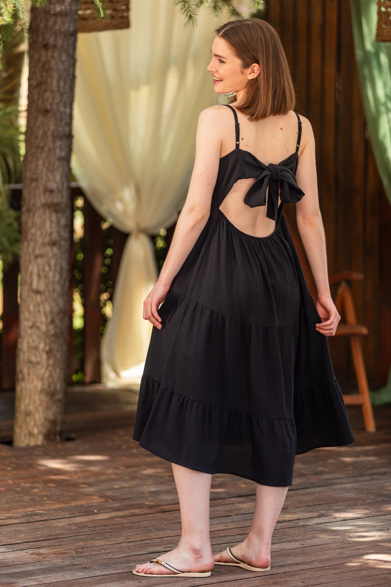 Nino Askılı Kenevir Elbise - Siyah için beden ölçüleri ve detaylar:
